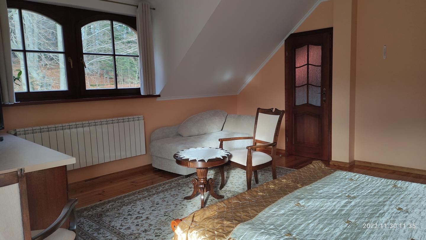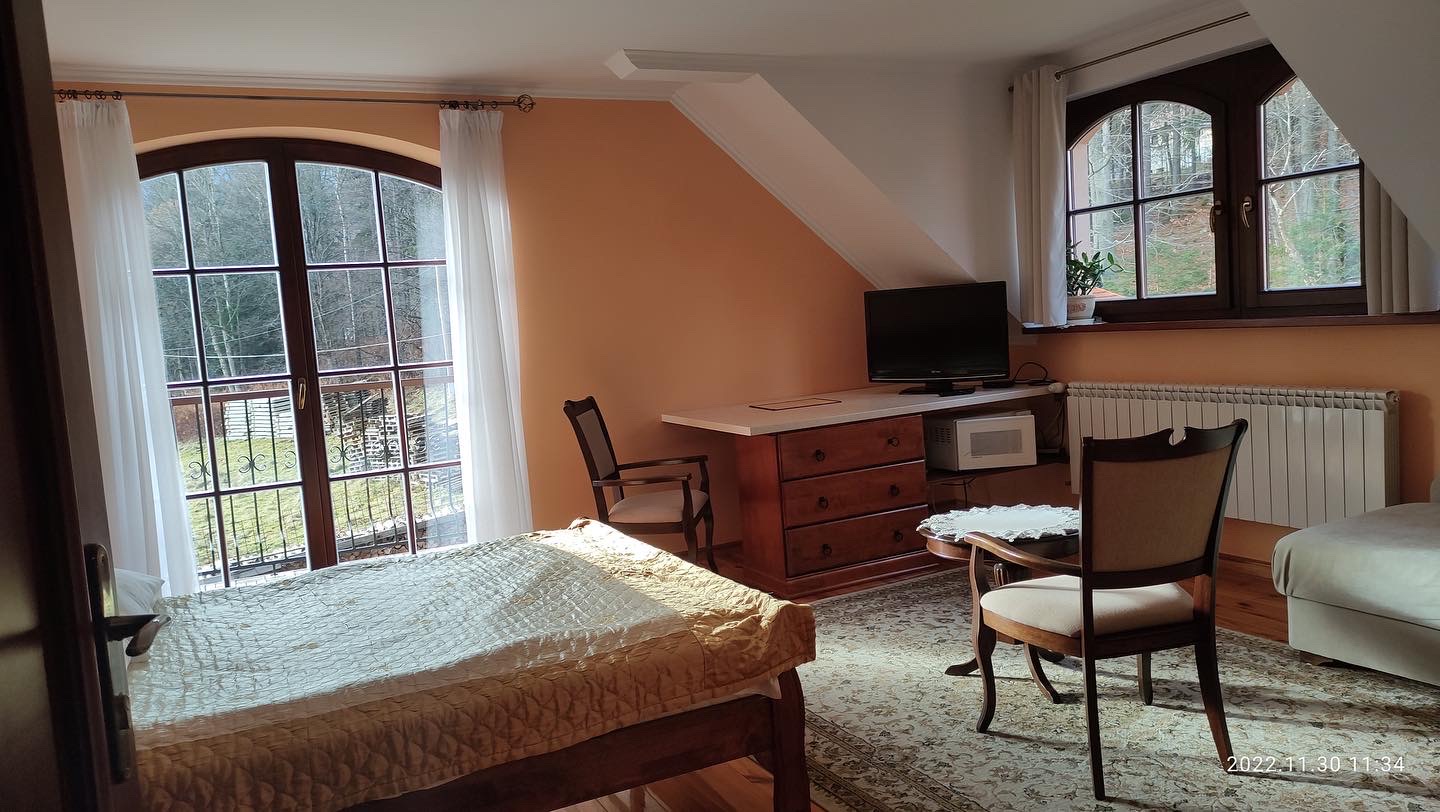 W prywatnej łazience znajdują się: toaleta, prysznic, ręczniki oraz papier toaletowy, mydło w płynie.